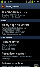 Please also note that some devices set the counter to 1 at every boot if you are running a custom kernel or recovery. On these devices, Triangle Away may always display 1 - make sure to check the counter in actual download mode.
